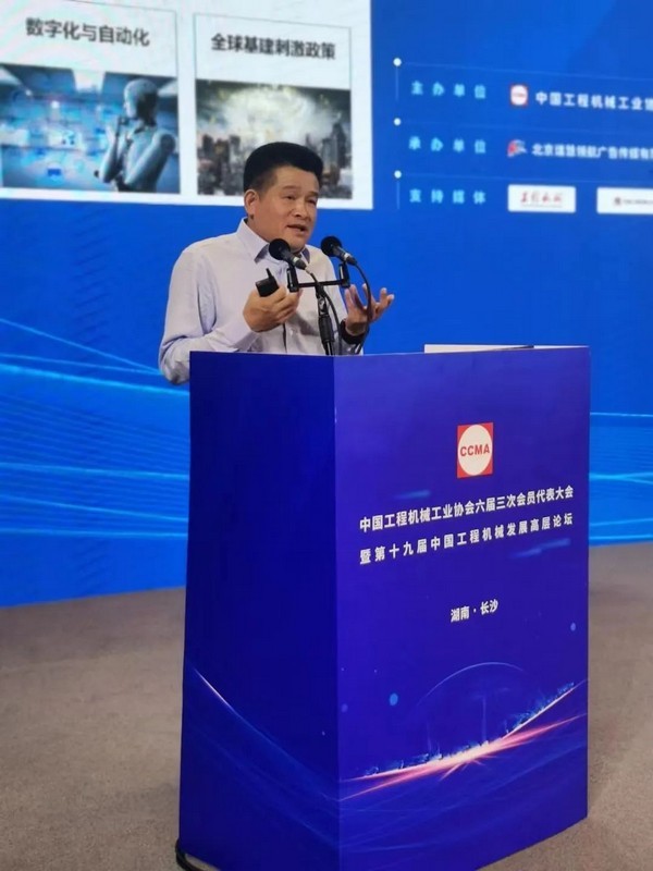 于孟生董事长在大会上作了题为《价值引领,高质发展,共创全球化新机遇》的主旨演讲,结合中国工程机械全球化进程,分析了中国工程机械企业从区域性到全球化发展的机遇挑战,提出了中国工程机械如何对品牌、供应链、人才等应变全球化挑战的思考。
